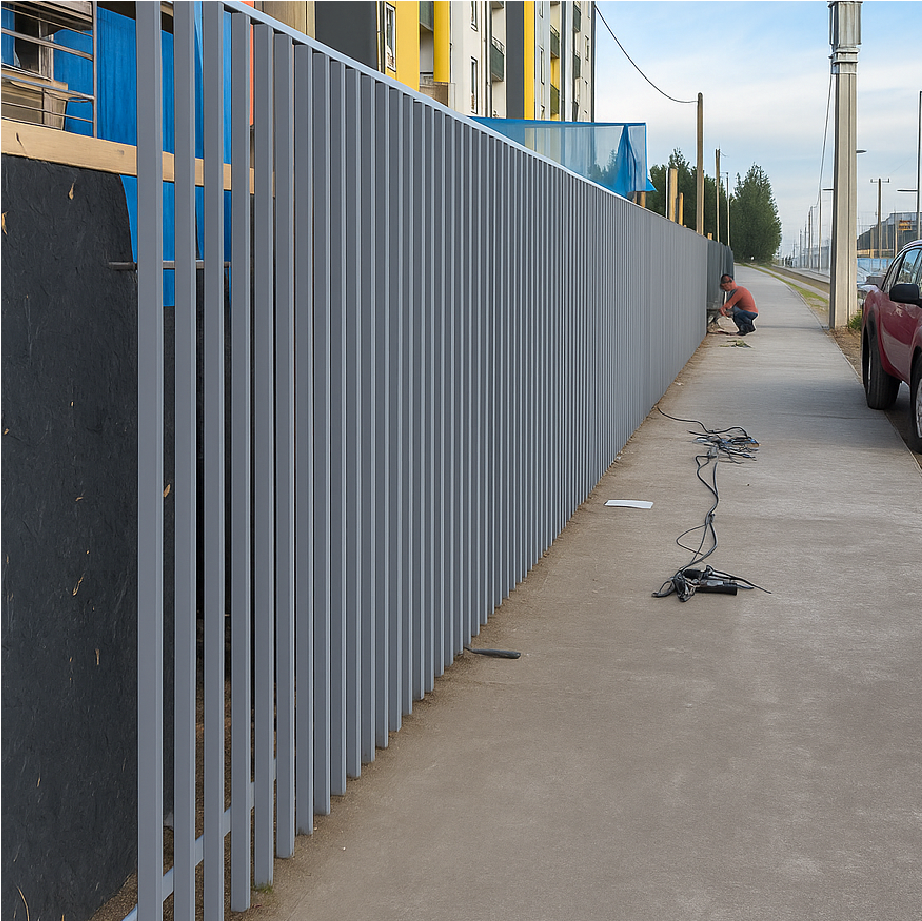 Esto es posible porque fabricamos las rejas perimetrales en nuestro taller, dedicándonos únicamente a montar los tramos de reja terminados en la obra.